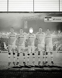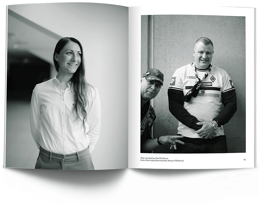 Über drei Spielzeiten hinweg war das Stadion von Borussia Mönchengladbach eine Bühne für ein außergewöhnliches Fotoprojekt. Heimspiele schaffen für einige Stunden eine eigene Welt und sind ein grandioses Ritual, in denen die Zugehörigkeit zu einer großen Gemeinschaft gefeiert wird. Immer sind sie ein Gesamtwerk von vielen hundert – und wenn man alle Fans und Besucher mitzählt – von vielen tausend Menschen. Jeder einzelne trägt bei zu dem unverwechselbaren Spirit, keiner darf fehlen: Manager, Balljunge, Spieler, Ordner, Wurstverkäufer, Hooligan, Sanitäter, Präsident, Polizist… Der Fotograf Markus Bullik hat diesen so ganz unterschiedlichen Menschen ein bemerkenswertes Denkmal gesetzt. Präzise und voll einfühlsamem Respekt hat er 1000 Akteure in und um das Stadion in Mönchengladbach porträtiert. Jedes der in Schwarz Weiß ausgearbeiteten Fotografien ist ein Beweis, wie sehr Fußball den Menschen Freude, Sinn und Würde gibt, wie sehr Fußball ihre Heimat ist.